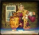 Description: Marie Galyamina from the village of Fedoskino created this originally shaped box. Here we can see a young Lady pouring a Tea in a glass near the Samovar.