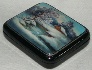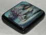 The scene is framed with a silver line. A simple pattern composed of silver metal punch-outs adorn the lid's corners.