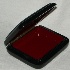 The box is constructed from paper-mache. Black lacquer is used to paint the exterior of the box while red lacquer completes the interior of the work. The lid is hinged from the top of the scene, and the box rests on a flat bottom. The work is signed with the artist's name.