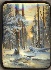 Description: This handsome piece of authentic Russian artistry was created by Bebikhov of Fedoskino. The sunset in the winter forest is beautifully reproduced here. A truly fascinating example of landscape composition.