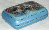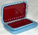 The box is constructed from paper-mache. Light blue lacquer mixed with silver powder covers the exterior of the box while red lacquer completes the interior of the work. The lid is hinged from the top of the scene, and the box rests on a flat bottom.