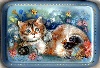 Description: Larisa Olisova is the author of this small, charming box. The work is called "Downy"; it is the name of a kitten painted on the box's lid. The kitten hunts after butterflies in the garden. Gold metal leaf shines through some of the butterflies. Gold paint is used to detail some of the flowers. The edges of the lid are adorned with silver punch-outs (silver scan patterns). Silver punch-outs can be also found on the box's exterior bottom, here the artist has also written her name, Fedoskino, the title and the year of 2008.