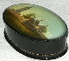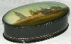 Description: This small oval box has been drawn by the talented Fedoskino painter Natalya Gogina. It shows a picturesque view of the village of Kideksha situated in the Vladimir Region, approximately 5 kilometers to the east of the town of Suzdal. The main place of interest of this village is the Church of Boris and Gleb built in 1152 that is depicted here.