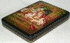 Description: This beautiful box is a creation of Tatyana Gomzina. It shows two beautiful girls dressed in the Russian peasant costumes looking out of the window of a wooden house. Romantic and elevated mood is reflected on their faces. The girls are waiting for their suitors who are about to appear on the road. Romantic and elevated mood is reflected on their faces.