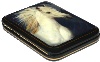 Description: This beautiful box has been painted by Irina Kosheleva. She paints her works in oils in the style of Fedoskino lacquer miniature. Her favorite themes to depict are scenes with animals. Here she has managed to express beauty of a horse running free. The artist has painted this noble animal in the realistic style against the dark blue background that sparkles with gold dust. The horse has a finely detailed body. Its luxuriant mane is streaming in the wind. Very beautiful and realistic!