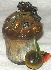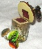 Known for her clever boxes with three-dimensional elements carved from them, Karina Kersilyan of Fedoskino takes her art a step further by making the entire piece more a sculpture than a box! These mushrooms as it has been said above peep from three-dimensional leaves, a three dimensional snail whose shell looks absolutely natural crawl along the cap of a big mushroom (this cap has holes that imitate the places eaten away by worms). What's more surprising is that the top section of the big mushroom opens on a hinge to reveal a small square compartment--a box after all!