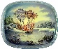 The box is made out of paper-mache. The lid is hinged from the top of the composition. The box sits flat. It is signed with the artist's name, and the village of Fedoskino.