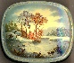 Description: This beautiful landscape has been painted by A. Buzovkina. Here the artist depicts the thrilling state of nature, a sudden change of seasons. The first snow has fallen covering the green tops of the trees. Somewhere green grass peeps out from the deep snowdrifts. The surface of the river reflects the sun rays that are still warm.