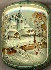 Description: The author of this small box is A. Pakhomov. Here he depicts a peaceful winter landscape and the Church and a view remind us another center of Russian Lacquer miniature-Kholui. An enigmatic beauty of a small Russian village in winter is successfully expressed here. Enchanting!