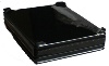 The box is constructed from paper-mache. Black lacquer is used to paint the exterior of the box while red lacquer completes the interior of the work. The lid is hinged to the top of the scene, and the box rests on a four legs. The work is signed with the artist's name in the corner of composition.