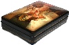 The scene is framed with a gold line; the box's sides are decorated with two parallel gold lines.