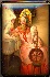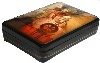 The artist has wonderfully entwined the realism of Makovsky with the magical beauty of Fedoskino miniature. She has mixed oil paints with gold powder to accentuate richness of the woman's costume. Gold powder shines through the woman's kokoshnik and through her jewelry.