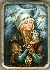 Working on this box the artist has used the delicate palette filled with cold blues. This palette is enriched and enlivened by gold metal leaf inlay that can be found in the Snowmaiden' hair, patterns on her costume and on the birds' breasts. The box's exterior is covered with light grey lacquer. For additional decoration this light grey background is studded with brilliant gold spots. The box's interior is traditionally covered with red lacquer.