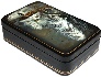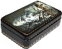 The scene is framed with a gold line; the box's sides are decorated with two parallel gold lines.