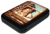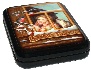 Description: This touching work has been created by talented Fedoskino artist Tatiana Levko. The box depicts a girl sitting at the window with a cat and watching for a Bullfitcher on a tree.