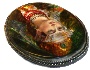 Description: Valentinf Maslova from the village of Fedoskino is the creator of this splendid brooch. On the oval piece of mother-of-pearl the artist has painted her interpretation of the oil on canvas painting originally painted in the 1900s by Konstantin Makovsky. Named “Boyaryshnya”, this masterpiece is kept in the private collection.