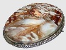Description: Valentina Maslova from the town of Dmitrov has been painted this splendid brooch. On the oval piece of mother-of-pearl the artist has painted the gorgeous reproduction of the painting "Winter" by Alphonse Mucha, the famous ART NOUVEAU artist! Mother-of-pearl shines beautifully through the oils and creates a sparkle of the woman's costume and the background!