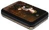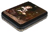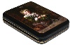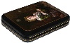 The painting on the box is framed with a gold line; the box's sides are decorated with two parallel gold lines.