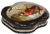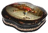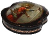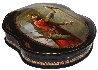 This brilliant example of Fedoskino realism has been created by Boris Shavyrin. The box shows the full-length portrait of a falconer admiring his bird. In old Russia falconers had to supply game to the tsar's court and got some benefits therefore. The background is filled with Russian medieval architecture.