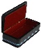 The box's exterior is black. The composition is framed with blue lines and two parallel lines are decorated the box's sides.