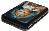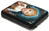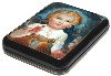 Description: This interesting work is a creation of Golovchonkov from the village of Fedoskino. The box depicts the Child Jesus blessing mankind and showing people the way to God. The Child Jesus represents Jesus from his birth to age twelve. At thirteen he was considered to be adult, in accordance with the Jewish custom of his time. The Child Jesus is frequently depicted in art, from around the third or fourth century onwards, in icons and paintings, sculpture, and all the media available.