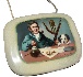 The box shows a hunter who is among with his hunting dog are preparing for the hunt-the Hunter is Stuffing the Cartridges.