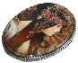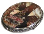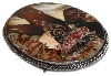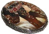 On the oval piece of mother-of-pearl the artist has painted the gorgeous reproduction of the painting of Alphonse Mucha, the famous ART NOUVEAU artist! Mother-of-pearl shines beautifully through the oils and creates a sparkle of the woman's costume and the background!
