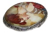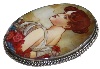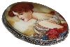 On the oval piece of mother-of-pearl the artist has painted the gorgeous reproduction of the painting of Alphonse Mucha, the famous ART NOUVEAU artist! Mother-of-pearl shines beautifully through the oils and creates a sparkle of the woman's costume and the background!