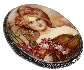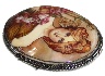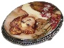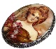 On the oval piece of mother-of-pearl the artist has painted the gorgeous reproduction of the painting of Alphonse Mucha, the famous ART NOUVEAU artist! Mother-of-pearl shines beautifully through the oils and creates a sparkle of the woman's costume and the background!