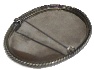 The oval pearl plate on which the portrait is painted is set into the frame made out of German silver. The portrait is framed with swirling metal patterns. The work is signed with the artist's name, Fedoskino and the year of 2010.