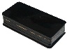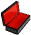 The gold patterns decorate the sides of the lid. The box is constructed from paper-mache. Black lacquer is used to paint the exterior of the box while red lacquer completes the interior of the work. The box has a hinge from the left of the composition and rests on a flat bottom. The box is signed with the artist's name, village and year (2009).