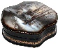 The box is constructed from paper-mache. Black lacquer is used to paint the exterior of the piece while red lacquer completes its interior. The lid is hinged from the top of the scene, and the box rests flat. The work is signed with the artist's name, Fedoskino and the year of 2011.