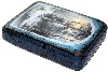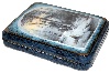 The scene is framed with a line drawn in white oils. The box exterior imitates the coloring of blue marble (tiny black veins are scattered against the light blue background). The interior is traditionally covered with red lacquer.