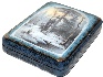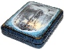 The scene is bright and radiant as besides of various shades of light blue oils the artist has used here gold metal paint and a piece of mother-of-peal.A piece of mother-of-pearl is set into the middle part of the scene, so the sky is shining through the trees and makes the box look more appealing!