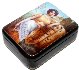 Talented artist and a teacher from the village of Fedoskino Golovchonkov Oleg has created this attractive box. It features the portrait of a Greek young lady with tambourine in her hand staying at a porch with a fur. Exceptional technique and masterful skill are needed to create this work. It is as entrancing as it is traditional.