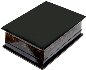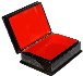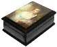 The box is constructed from paper-mache. Black lacquer is used to paint the exterior of the box while red lacquer completes the interior of the work. The lid is hinged from the left of the composition, and the box rests flat. The box is signed with the artist's name, village and year (2011).
