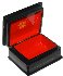 The box is constructed from paper-mache. Black lacquer is used to paint the exterior of the box while red lacquer completes the interior of the work. A gold line frames the composition, while the sides of the box are decorated with intricate gold patterns. The box has a hinge from the top of the composition and rests on a flat bottom. The Fedoskino "troika" insignia can be found on the interior of the lid. The box is signed with the artist's name, village and year (2002).