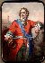 The portrait is framed with a thin gold line. Two parallel gold lines wrap around the box's sides.