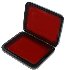 The box is constructed out of paper-mache. The lid is hinged from the top of the scene, and the box rests on the flat bottom. The work is signed with the artist's name.