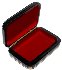 The box is constructed out of paper-mache. The interior of the box is painted with red lacquer. The box has a hinge to its top and rests on a flat bottom. The artist has signed his name at the bottom of the composition.