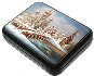 The architecture is painted with photo quality accuracy. The surrounding winter landscape is painted with smooth watercolor like brush strokes. To enliven the monotonous blue-gray palette of the composition, the artist enhances some of the details with gold and aluminum paint. The result is stunning. The domes of the cathedral, metallic roofs of the houses, the surface of the river sparkle dramatically reflecting the sunset glowing.