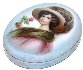 Description: This elegant box has been painted by Larisa Olisova. Here she has drawn the portrait of Lady in a Hat.The portrait is drawn against the light blue background. Silver powder shines through the bows that decorate the woman's dress and feathers on a hat.