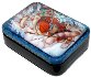 The scene is painted in bright oils and detailed with brilliant gold paint. The box's exterior (except the box's exterior bottom) is decorated with beautiful patterns that resemble frost patterns on the window. These patterns are painted with the help of lustrous silver powder. The box's interior is traditionally covered with red lacquer.