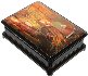 The scene is framed with a gold line; the box's sides are decorated with two parallel gold lines.
