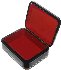 The box's interior is traditionally red, the exterior is covered with a black paint.