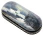 Description: This little box painted by Sergey Parmeonov of Fedoskino depicts the clarity and beauty of a winter day. The scene depicts a frozen, icy river and the surrounding landscape filled with trees and snowdrifts. The landscape is lyrical and romantic. Snow-covered trees, with delicate lace-like branches, rolling hills covered with thick snow create a harmonious image. The scene is painted mostly in white and gray-bluish tones, which in the best way possible can help to reproduce the atmosphere of a winter day. The palette is soft and cool, and you can almost feel the chilly air. The artist does a nice job creating the look of snow on the trees, and the reflection of the bank on the icy river. Mother-of-pearl creates the depth of the sky and the brilliance of sunrays fighting through dense gray clouds. The snow looks very soft, as if it were untouched all winter. Breathtaking landscape!