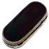 The exterior of the box is painted with black lacquer and the interior is painted with red lacquer. The lid is hinged from the top of the composition and the box rests flat. The box is signed with the artist's name.