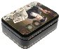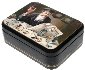 The portrait is framed with a gold line. Two parallel gold lines can be found wrapping around the box's sides.