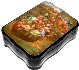 The scene is framed with a gold line; the box's sides are decorated with two parallel gold lines.
