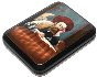 The portrait is framed with a gold line; two parallel gold lines can be also found wrapping around the box's sides.